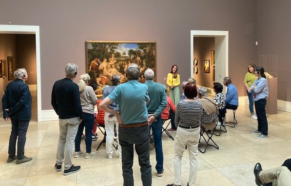 Die Kunstexpertin Ricarda Geib führte 21 interessierte Besucher zu unterschiedlichen Bildern unter der Überschrift „Paradies und Promenaden – Gärten und Parkanlagen in der Kunst“ durch die Galerie.  Sie gab sehr kurzweilig beeindruckende Informationen zu den Bildern der großen Meister aus den letzten 4 Jahrhunderten.